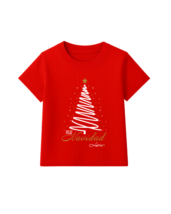 Remera Algodón Arbolito Feliz Navidad Personalizada